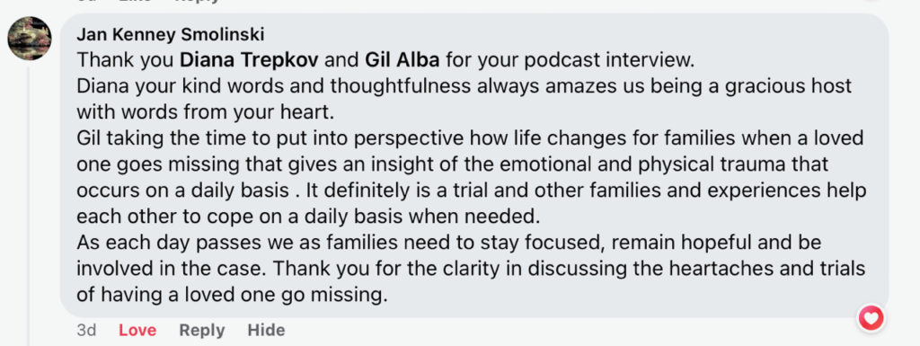 Don’t forget to subscribe to the podcast “Can I Help Find Your Missing Loved One” You may be the reason a missing loved one comes home or a murderer is off the street.