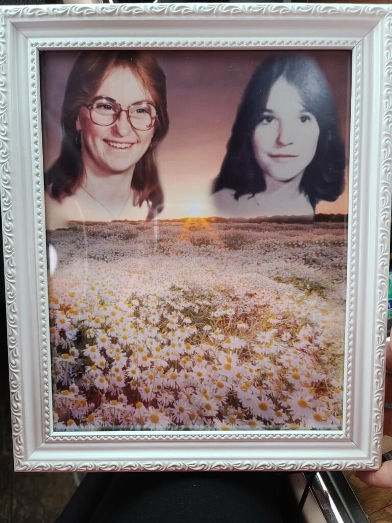 Field of daisy's with missing Shelley-Anne Bacsu and friend Maxine Jewell, both at age 16